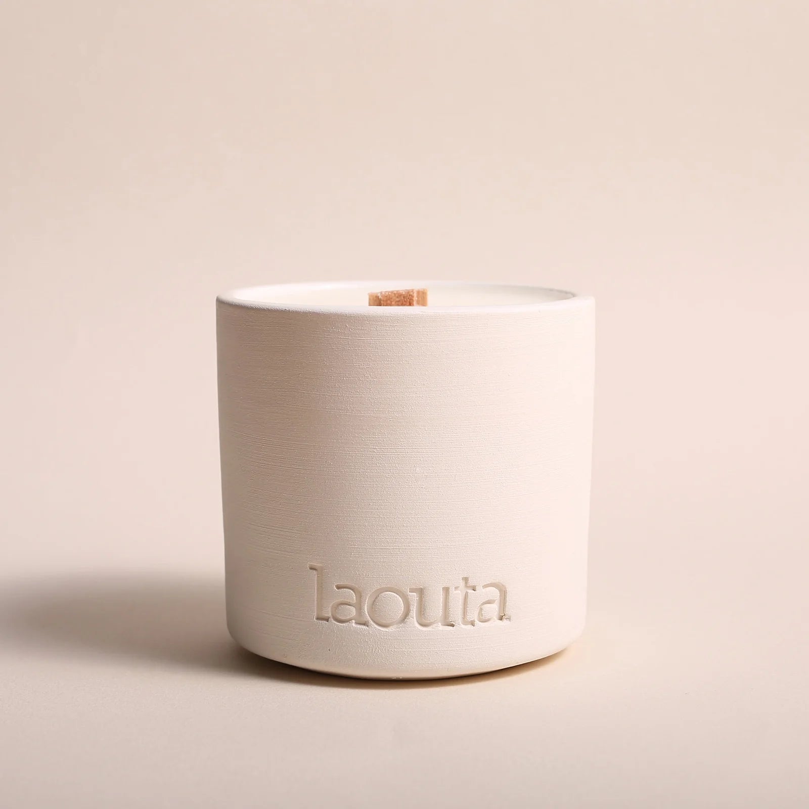 This beautifully crafted candle features a wooden wick and a handmade ceramic vessel. It is packaged in a unique paper pouch that can be washed and reused — thoughtful, sustainable and designed to last.